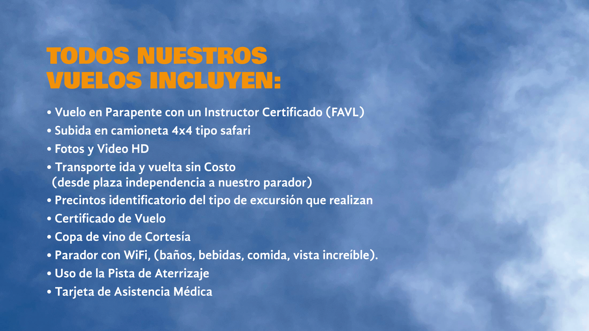 (en caso que la condición no sea favorable para llegar al vuelo extendido, se cobrará Vuelo Biplaza con Instructor $140.000 o u$s 100)