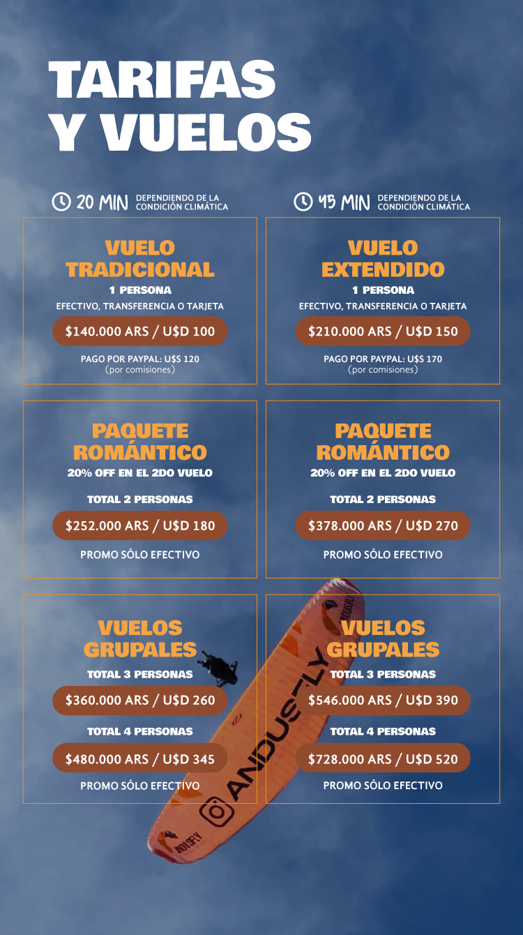 Gracias al clima seco característico de la región, volamos casi todo el año, ya que las condiciones son estables y predecibles para disfrutar de un vuelo seguro y placentero.
